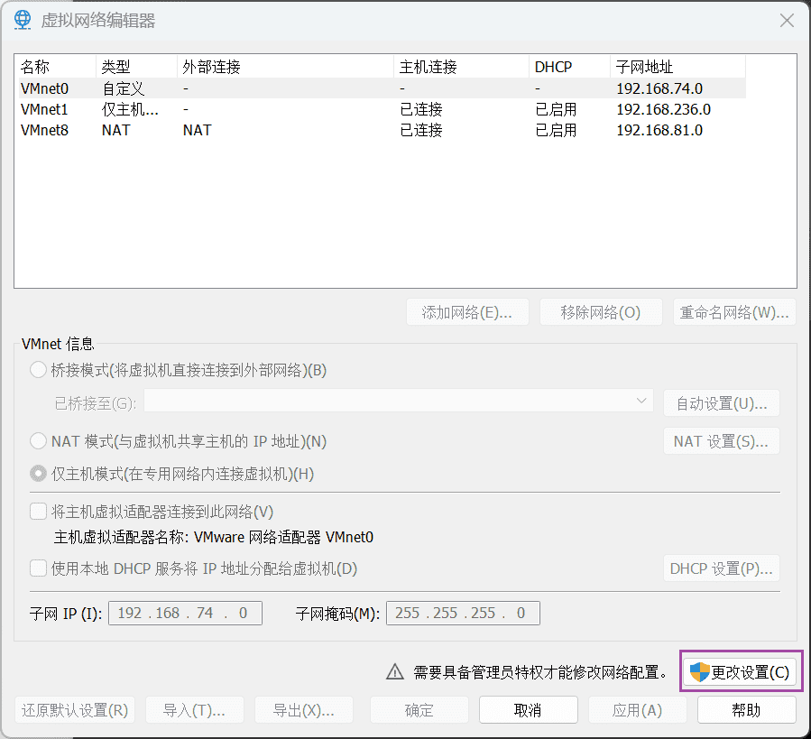 这样我们也可以看到我们关心的以太网口连接到了哪一个网络适配器,也就是网卡,后面虚拟网络编辑器的桥接模式要配置成这个。