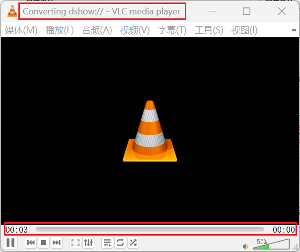 点击完流就可以看到 VLC 的进度条开始动了,这个就表示 RTSP 流媒体服务器搭建好了,现在正在推流。