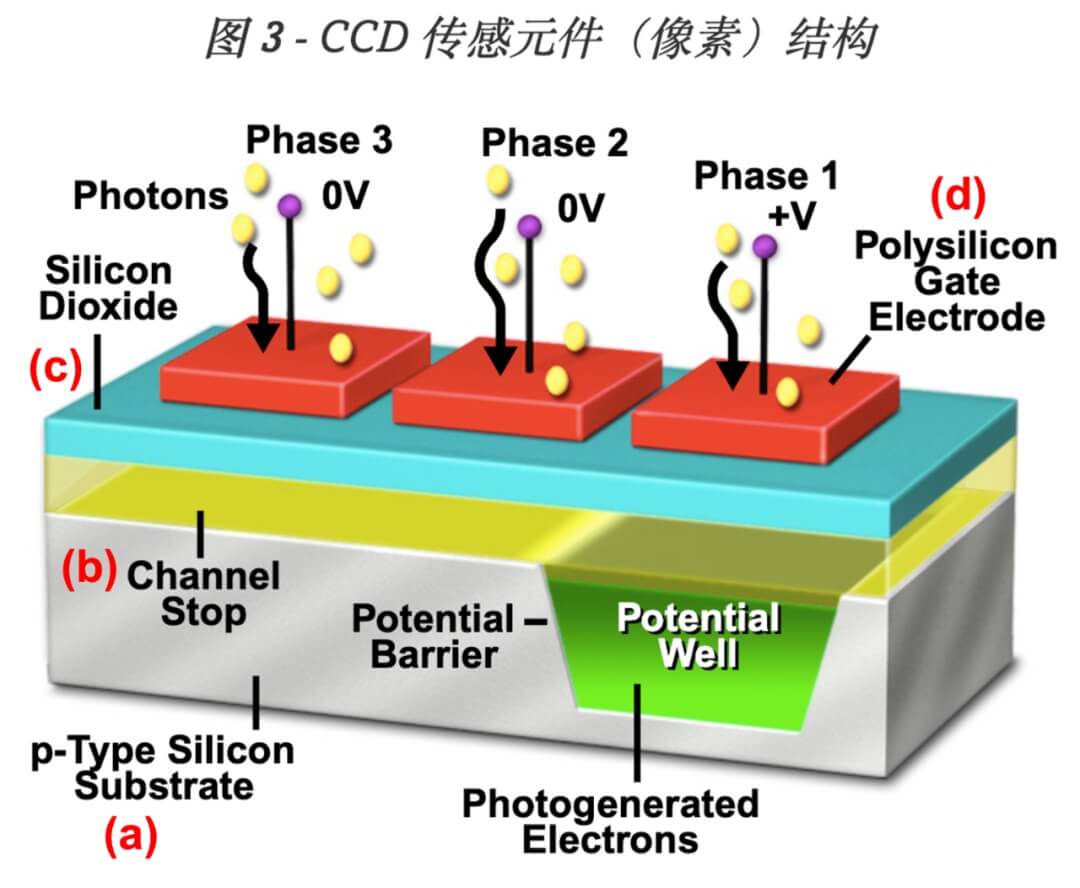 ② 信号电荷的存储:第二步是信号电荷的收集,就是将入射光子激励出的电荷收集起来成为信号电荷包的过程。