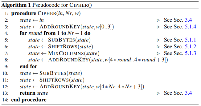state ← MIXCOLUMNS(state) . See Sec. 5.1.3