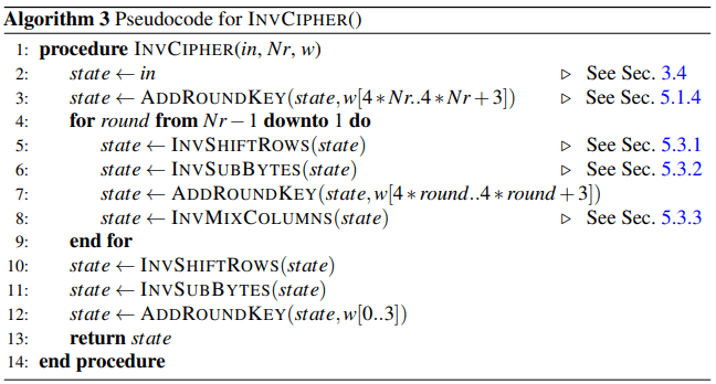 state ← ADDROUNDKEY(state,dw[4*Nr..4*Nr+3])