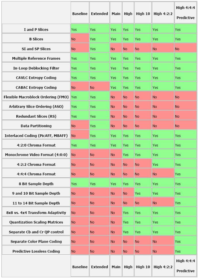 H.264 有四种画质级别,分别是 baseline, extended, main, high: