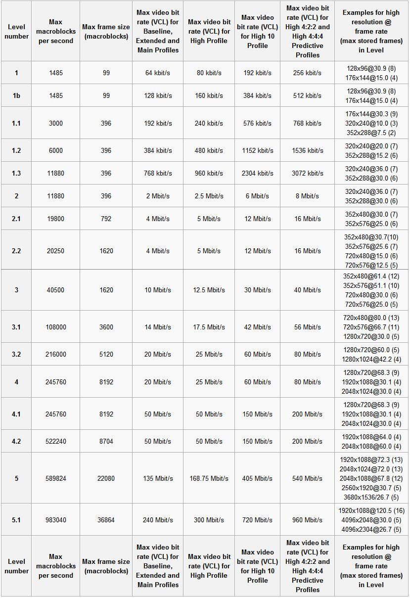 Level 越高,视频的码率、分辨率、fps 越高。