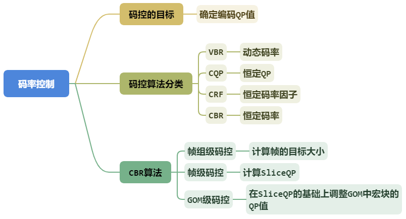 同时,常用的码控算法主要有 CQP、CRF、VBR 和 CBR。并且,我们还对 CBR 进行了深入地探讨。我们知道了 CBR 主要分为:帧组级、帧级和 GOM 级三个级别的调整,并通过一步步不断精细化的调整最后尽量达到恒定码率的目标。
