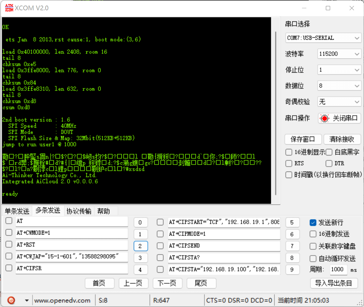 (1)首先确保模组可以正常运行,发送 AT 指令(AT 固件)可以有回复 OK(即 确保电源和串口都是正常的);