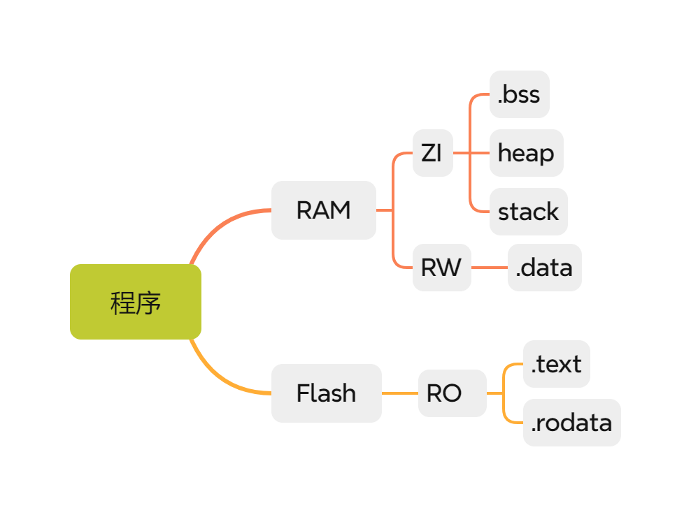 RO、RW、ZI 是嵌入式系统和编译链接过程中常用的术语,用于描述程序内存的分布情况: